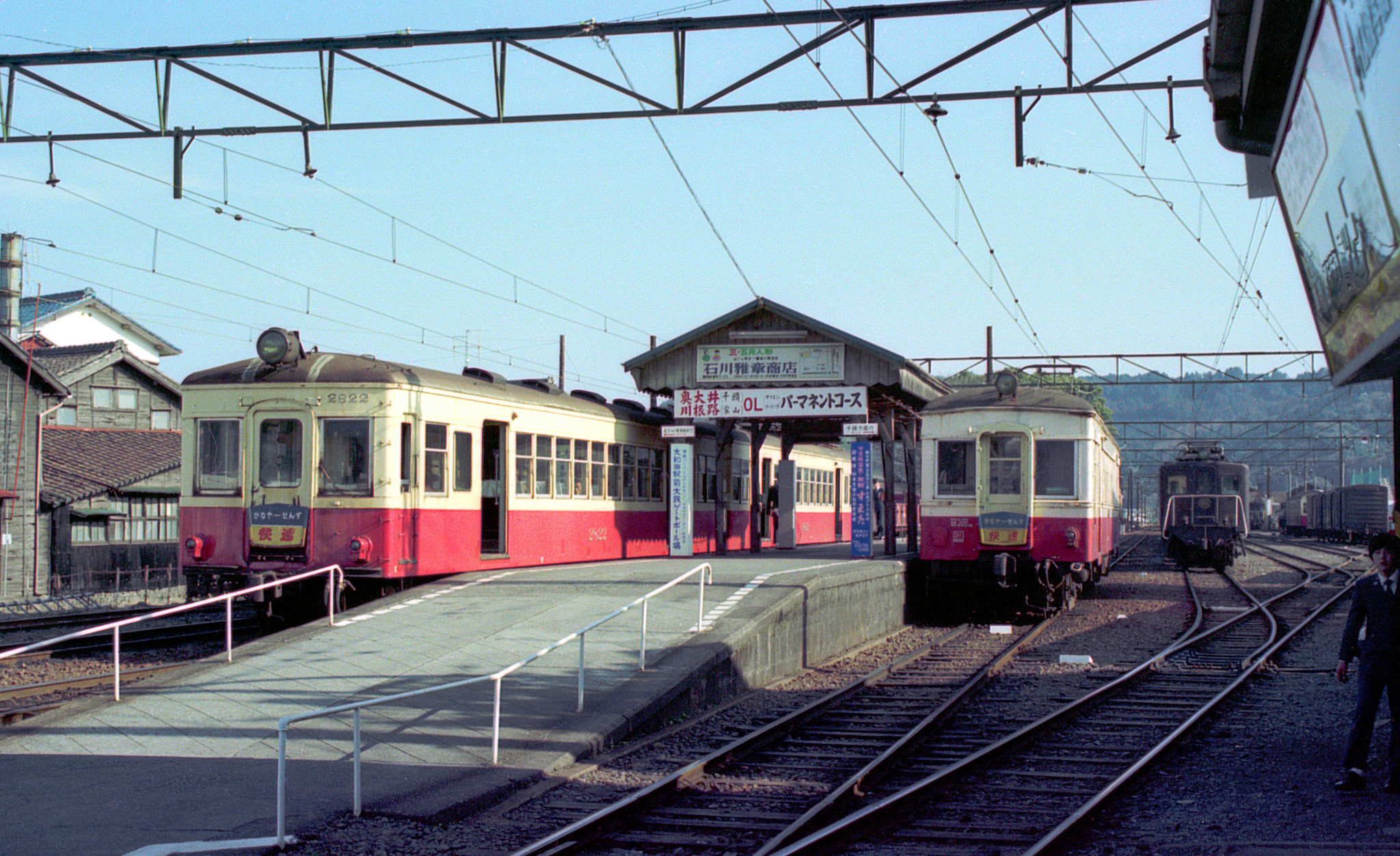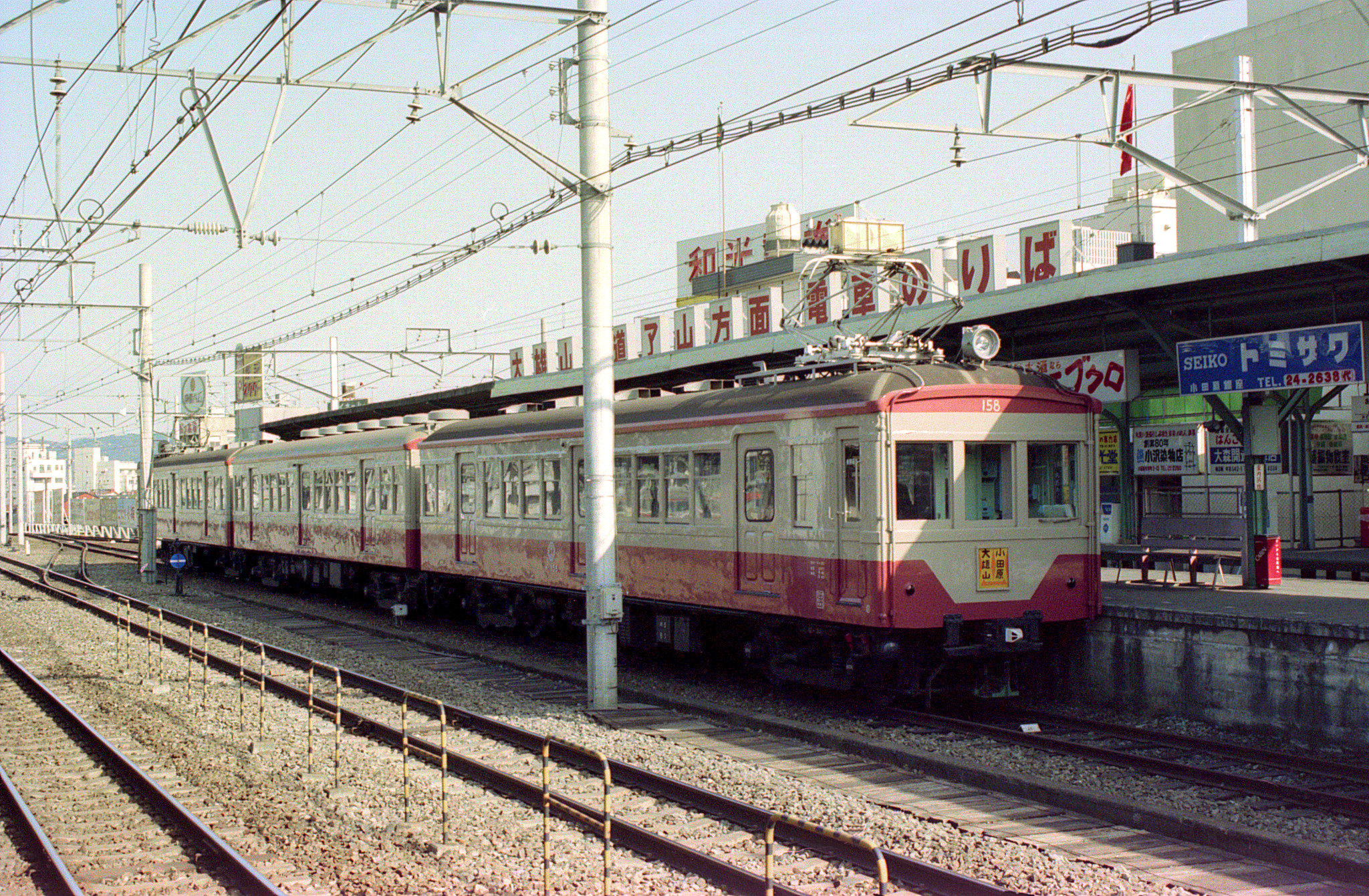 これって、国鉄の在来線ホームから見た光景ですよねぇ?…ということは、名古屋まで東海道線を乗継いで行ったのでしょうか。お腹の大きな妊婦を同伴して、そんな酷なことをするかなぁ? やはり、この後、新幹線に乗ったと思いますが…記憶が定かでありません。それはともかく、伊豆箱根鉄道は初めて撮りました。小田原は子供の頃から何度も通っていますが、写真を撮ったのは岳南鉄道以西の私鉄ばかりでした。一見、西武と見間違えられそうな旧形国電。モハ158-サハ184-モハ157という編成ですが、モハ158は元は西武クモハ315。前身は省線のモハ50形(50125)です。昭和47年に西武から譲受しましたが、当編成は、この年の9月に廃車となってしまいます。
