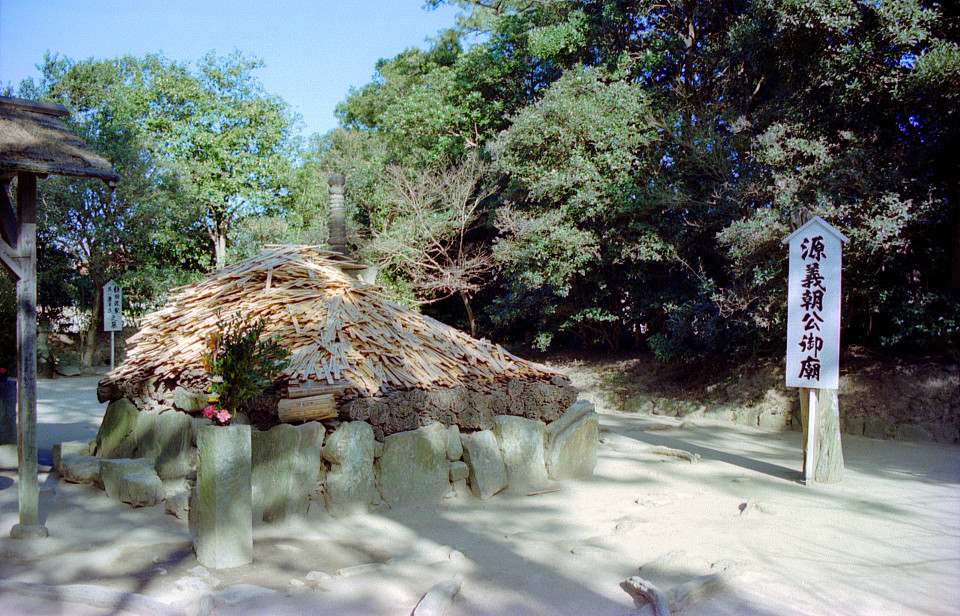 学生時代から『平家物語』に傾倒し、同様に少し前の時代を扱った軍記物の『保元物語』『平治物語』も大好きでした。中でも、源義朝(頼朝の父)が最期を迎えた知多半島の「野間大坊」は行ってみたい場所だったので、出産を控えた妻を実家に送り届けた翌日、一人で名鉄知多新線を終点の「内海」まで乗り通して、内海の海を眺めた後、「野間」で下車して野間大坊(大御堂寺)を訪れました。義朝の墓には、彼の死を惜しむように多くの木刀が奉納されています。その帰途、国鉄の武豊線に乗ってみようと思い、起点の「武豊」駅に近い名鉄の「知多武豊」で降りて、線路際で何枚か写真を撮りました。初めに通過したのは、やや無骨な電車。戦後の昭和23年に登場した3800系のようです。