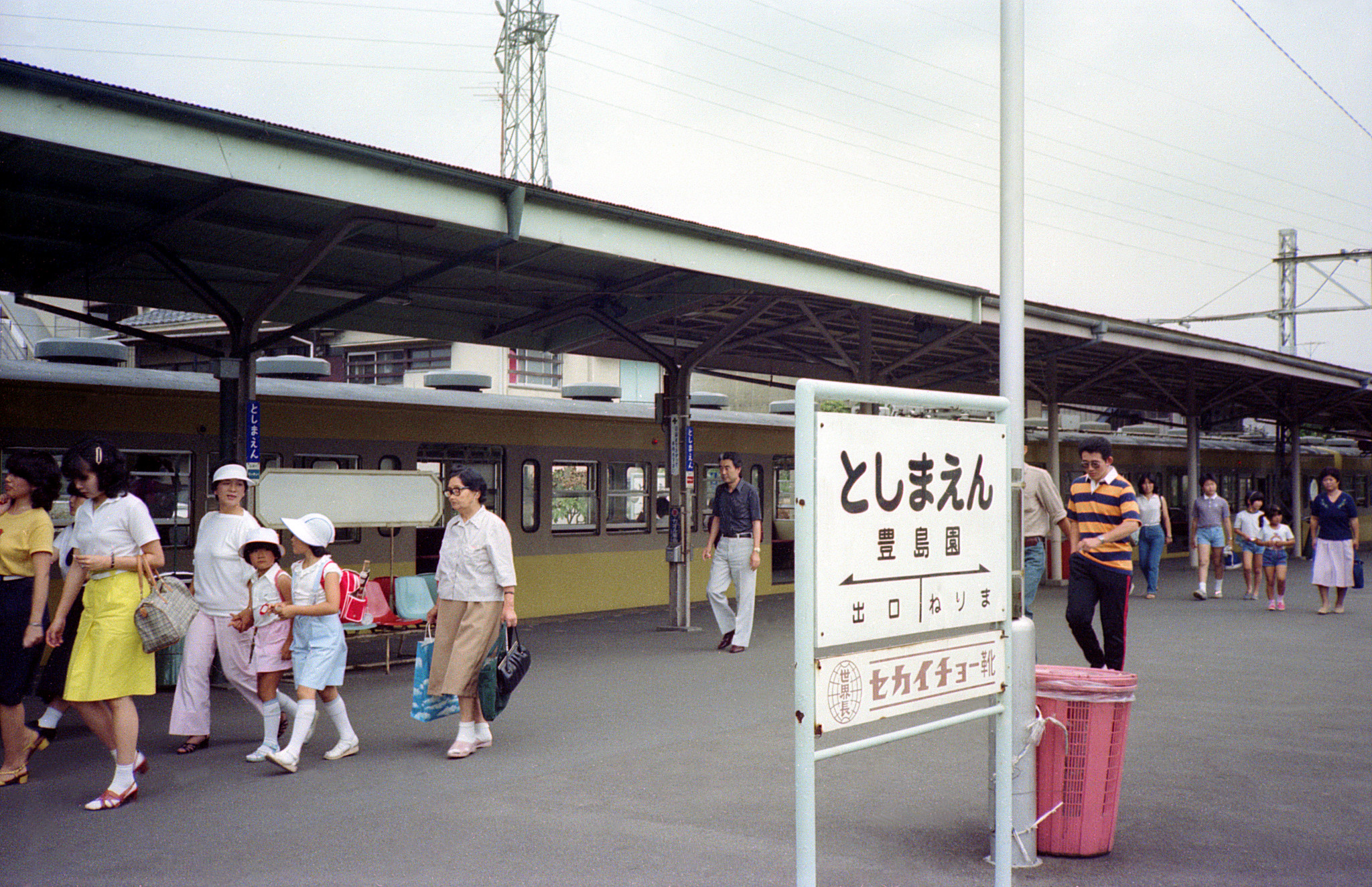 皆さんご想像の通り、次のターゲットは西武豊島線でした。練馬から豊島園までの、これも僅か1kmの支線です。歴史は古く、昭和2年に武蔵野鉄道の路線として開業しています。当時の駅名は「豊島」でした。今日これまで乗り潰してきた路線とは異なり、線内の折返しよりも池袋からの直通運転が基本です。従って編成も長く、現在は8連も走っていますが、この当時は線内往復運転の4連もあったようです。この101系はどちらでしょうか。ついでに、これまでの路線の開業時について述べると、営団北綾瀬支線は車庫の出入庫線として昭和44年に開通し、10年後の54年に旅客営業を開始。東武大師線は昭和6年に「西板線」の一部として開業し、43年に0.1km短縮されています。