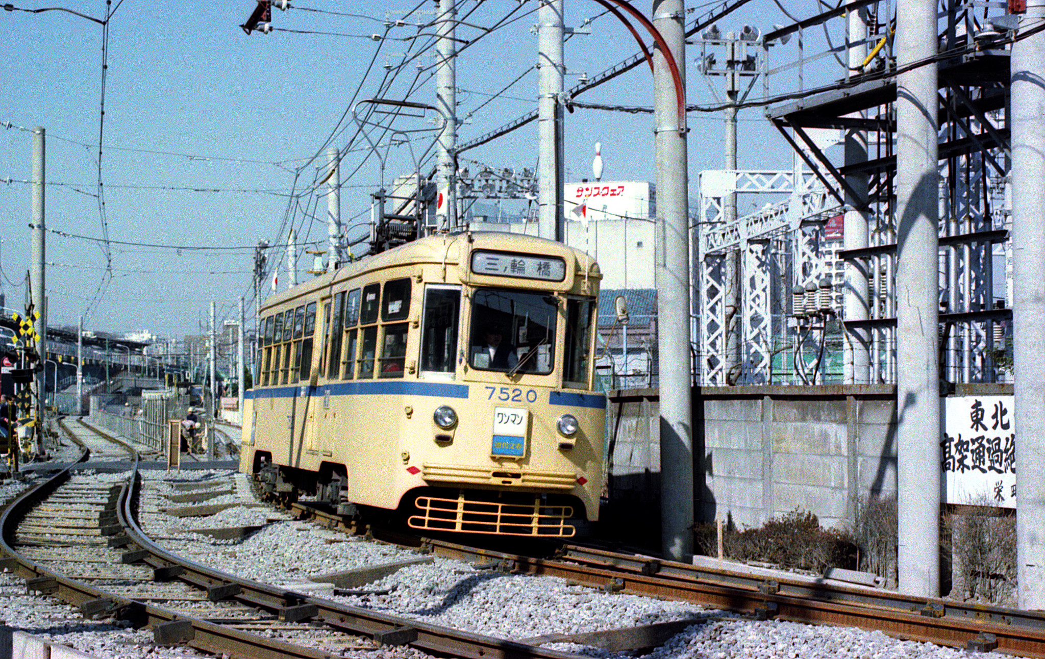 前回の日暮里から京浜東北線で王子へ。駅から出て、本当にひさしぶりに「都電」を訪れました。もちろん「荒川線」になってから、既に7年以上。完全ワンマン化からも、間もなく4年が過ぎようとしています。7500形も、すっかり青帯が馴染んだようです。王子駅前停留場から栄町に至る区間は東北新幹線の工事が始まっていて、くねくね曲がる仮線が敷かれています。13年前のこのあたりの様子と比べて落ち着きが無くなり、同じ形式の電車が走っていても殺風景な雰囲気が漂っています。近い将来、この青空を見上げることもできなくなってしまうのでしょう。今日は、この周辺だけになりますが、ひさしぶりに会った「都電」をじっくりと眺めてみようと思います。