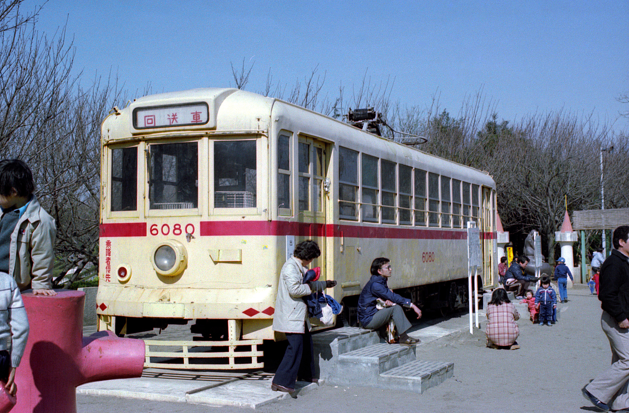 飛鳥山公園に入ってみると、都電6080号が保存展示されていました。昭和24年3月に生まれて、最初は青山車庫に配置。その後、大久保の所属となって車庫が廃止されるまで働き、昭和45年に駒込車庫に移ってからは19系統として飛鳥山界隈を走るようになります。1年後にはまた車庫の廃止に伴って荒川車庫へ移動。今度は32系統として飛鳥山を巡り、昭和53年まで働いた後に廃車となりました。荒川車庫への転属直後に写真を撮っていますが、まさに飛鳥山を回り込んで走る場面でした。廃車から4年が過ぎて野外展示の車体は色褪せ、傷みも見え始めています。この後、更に酷い状態になって先行きが心配されましたが、有難いことに、その後、美しく修復されました。