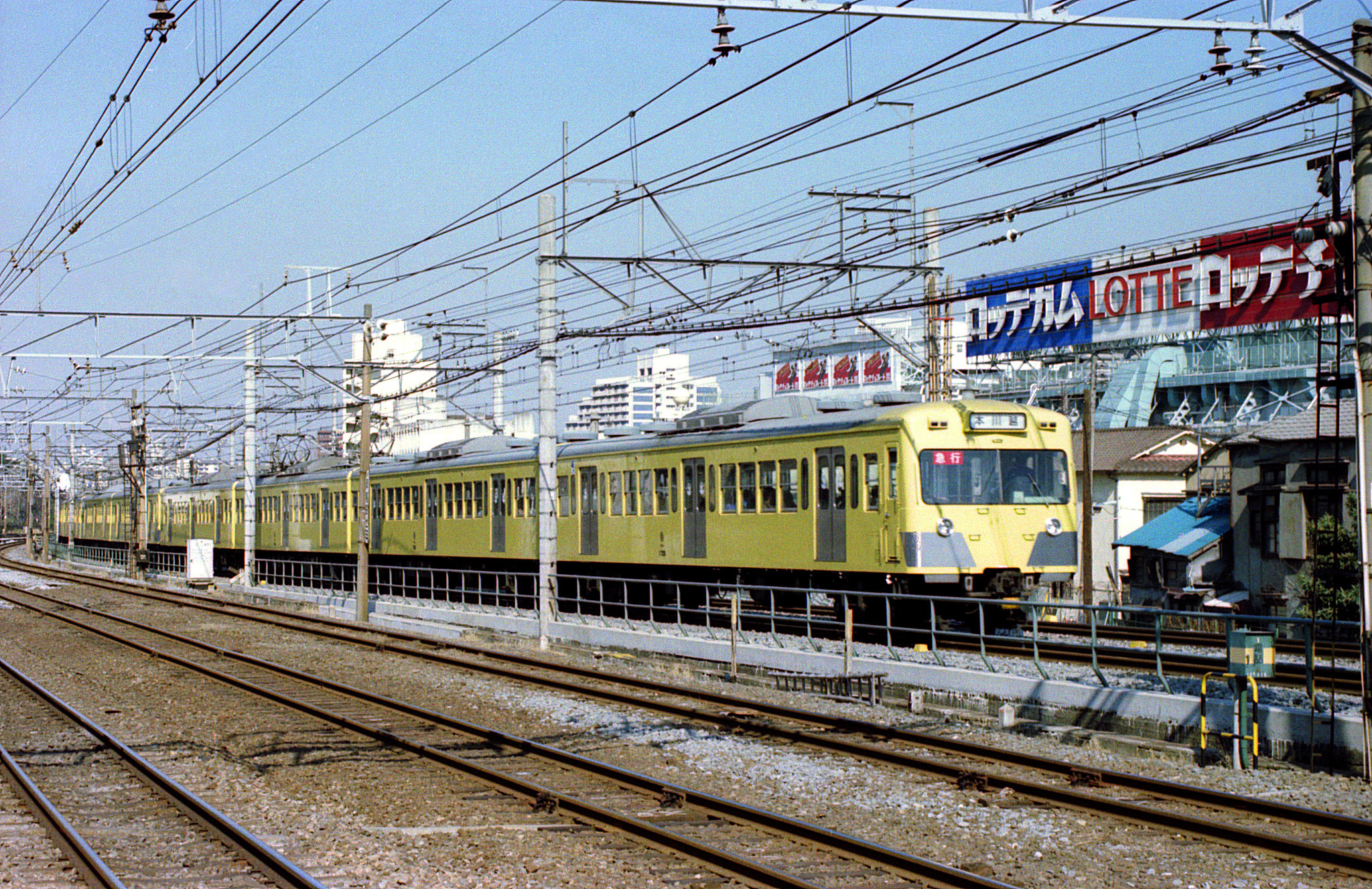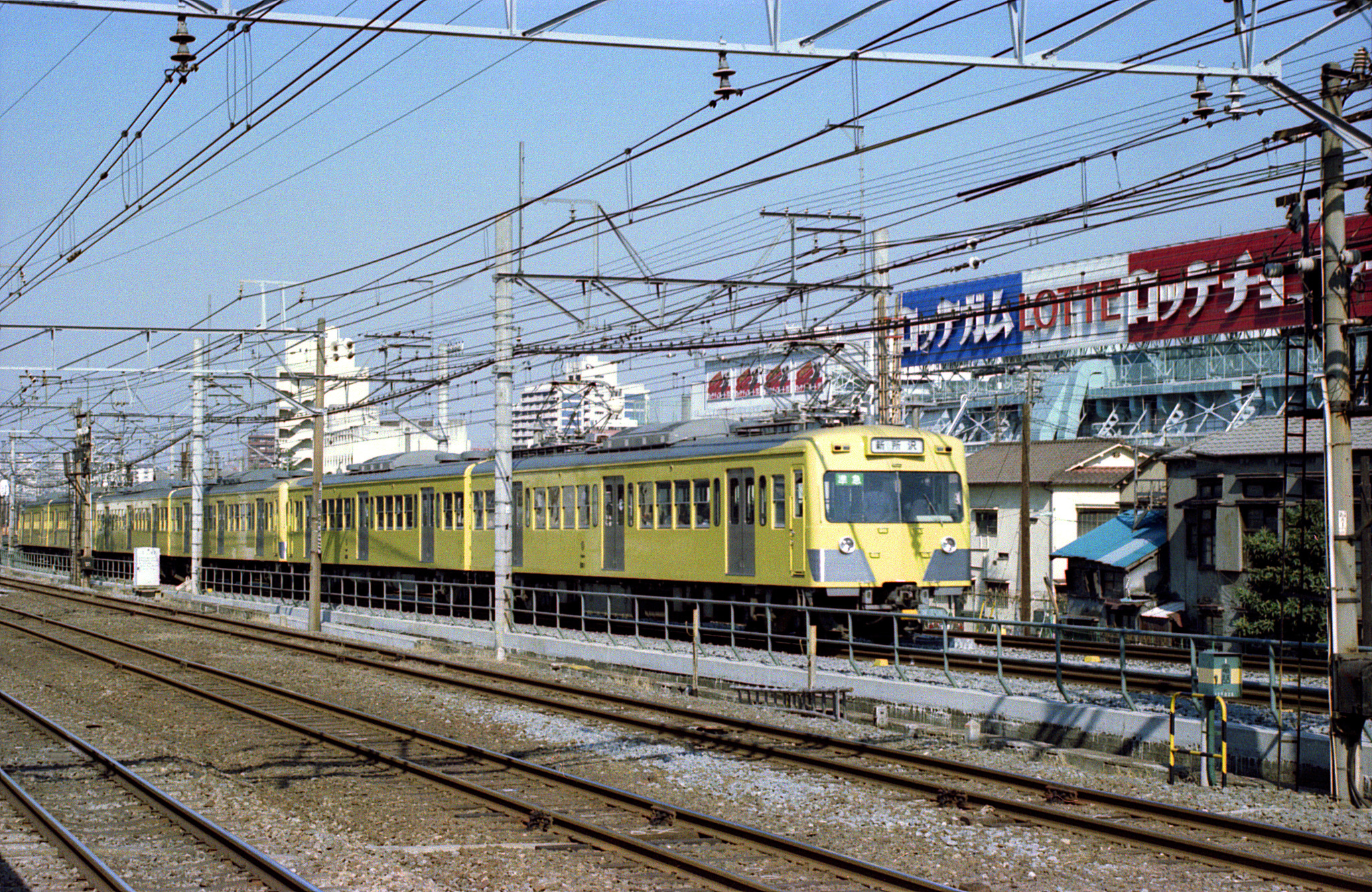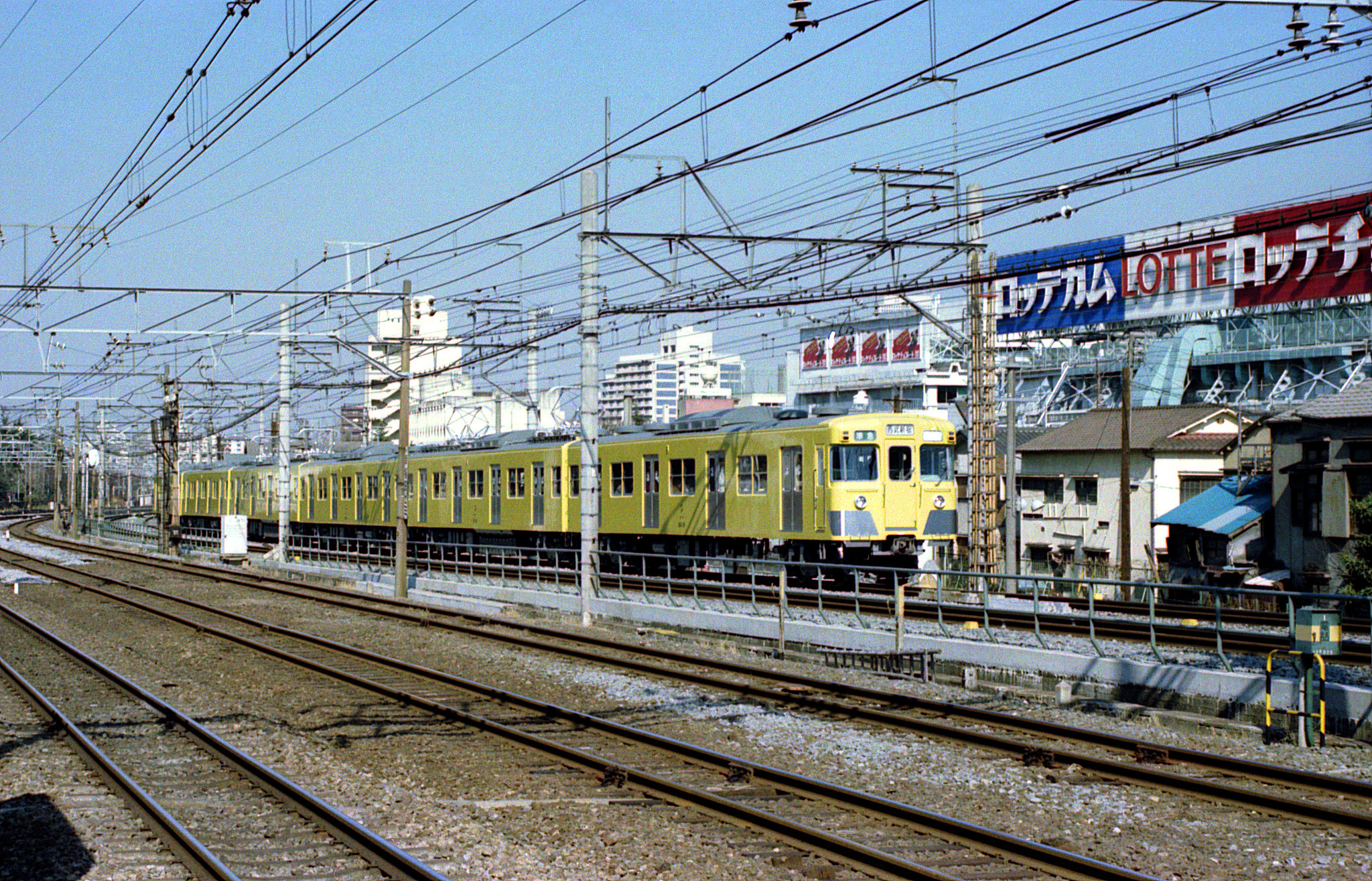 初めて撮る2000系。昭和52年に新宿線用の車輛として登場し、それまでとは異なる4扉車であることや、西武フェイスとは違う貫通路付きの正面の表情などのイメージチェンジに驚きましたが、何より、この形式の導入以降、新宿線も「黄色化」が進んだように思えます。701系をはじめとする従来の西武の赤系塗装が好きだった自分としては、残念な気持ちもありました。通学途上など山手線に乗ってこのあたりを通ると、線路際のロッテの工場から車内へ甘い香りが漂って来たものでしたが、環境対策が進んだのか、香りの「漏れ」は昔ほどでもないように感じられ、ちょっと残念な気もします。甘ったるさを嫌がる人もいましたが、ペパーミントでもグリーンガムでも、自分は好きでした。