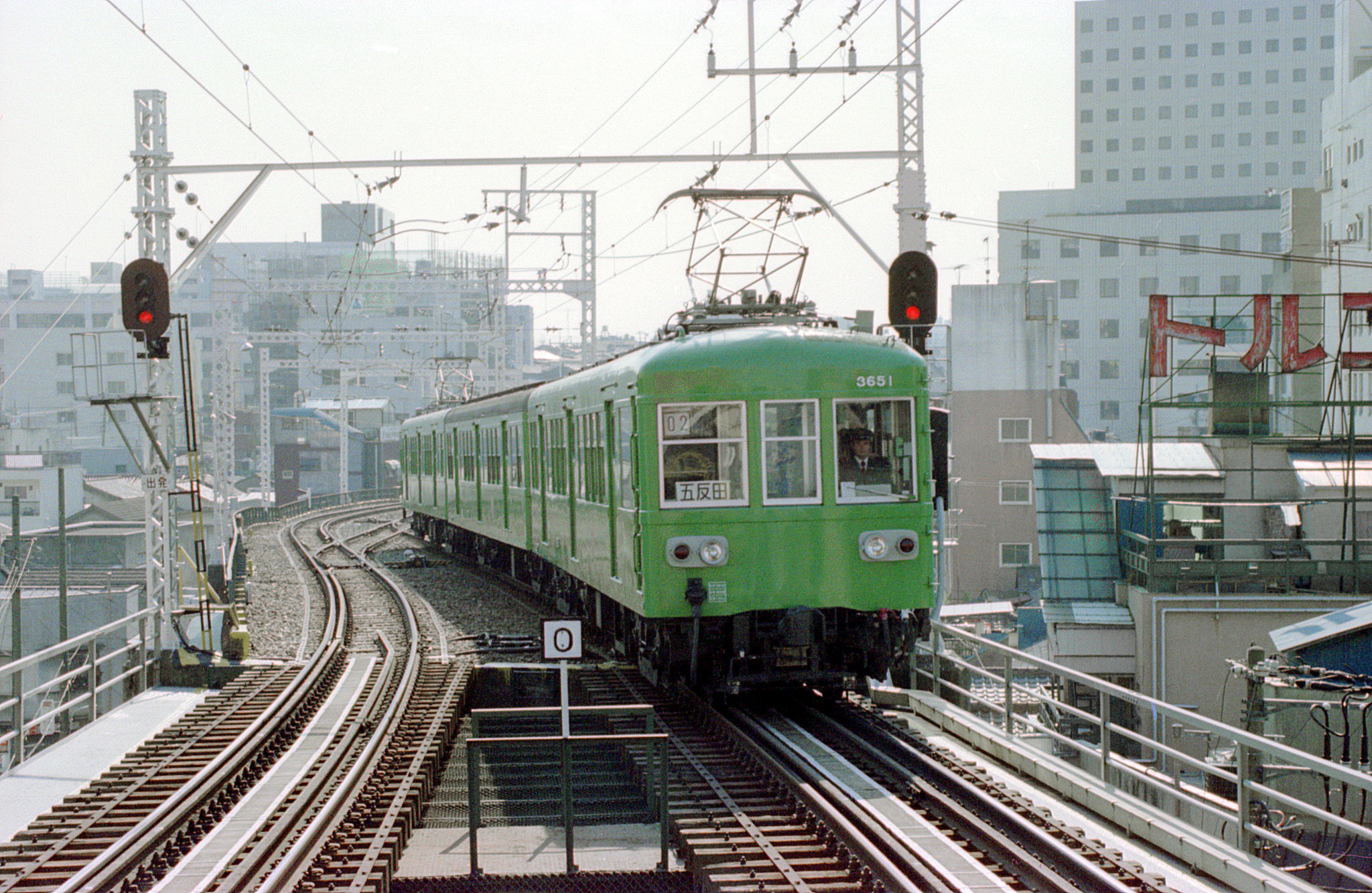 新大久保から山手線の内回りで南下して、今度は五反田に来ました。これから東急池上線に乗ろうと思います。東急とは何かと縁もあり、馴染み深い私鉄ですが、その中にあって、池上線とは、あまり接する機会がありませんでした。考えてみれば、これまで写真は一度も撮っていなかったように思います。逆光の中、五反田駅の高架ホームに到着するのは、デハ3651を先頭にした3両編成。デハ3650形は、戦時中の昭和17年に大東急のクハ3650形として6両誕生。戦後は半室を進駐軍専用車とし、白帯を巻いて使用した後、昭和27年の電動車化によってデハ3650形となった車輛です。隣の大崎広小路駅との間には、窮屈な線形で、折返し用の片渡り線が2箇所設けられています。