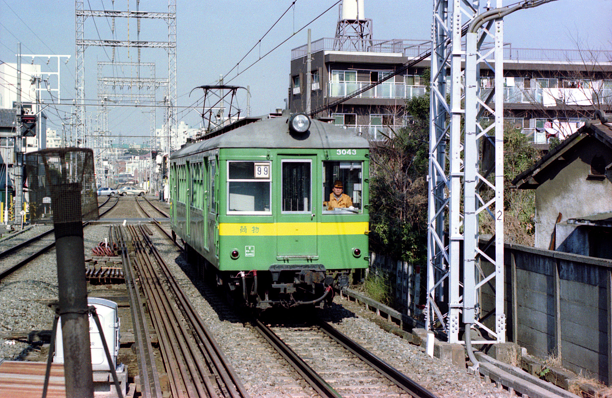 荏原中延から先も、そのまま池上線に乗って、降りる駅を物色したのでしょう。しかし、この日の記憶も薄れ、この写真の場所も覚えていませんでした。そこで少し調べてみて、池上線には少ない島式ホームという点から「雪が谷大塚」と推定してみましたが、現在の様子を見ると、駅の北の線路脇の建物も同じなので、正解でしょう。下り線を走って来たのは、荷物電車のデワ3043でした。この車輛は昨年の夏に東横線の渋谷駅でも見ています。改造前のデハ3450形の面影が充分に残っていますね。さて、この日は東京のあちこちで少しずつ電車を撮って来ましたが、最後は東京の南西部の「東急ラビリンス」に足を踏み入れました。この先、どこに寄って、どういう経路で家へ帰りましょうか。