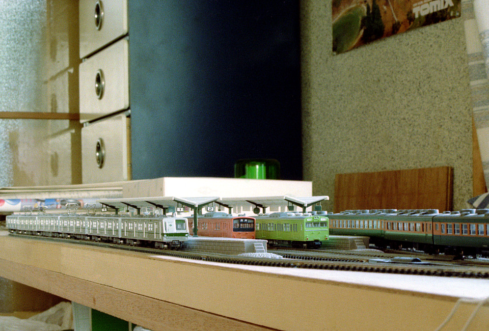 一気に昭和57年を迎えました。ここまでの半年間、鉄道写真は撮っていません。子供が小さいので家族写真が多く、おまけに昨年末には0歳で入院したり、また、この年度は中3の担任だったので進路指導なども忙しく、なかなか「撮り鉄」には行けません。そんな中、春の光を感じる「建国記念の日」は、ひさしぶりに電車を撮りに出掛けました。まずは東京駅で国鉄の201系を初めて撮りました。昭和54年に試作車(乗務員扉の後方に戸袋窓あり)が登場した際には、早速発売されたNゲージの鉄道模型キットを購入して組み立てましたが、実物の写真は量産車です。いずれにせよ、ブラックフェイスの引き締まった前面の表情には好感を持ち、思い切ったデザインに感心していました。